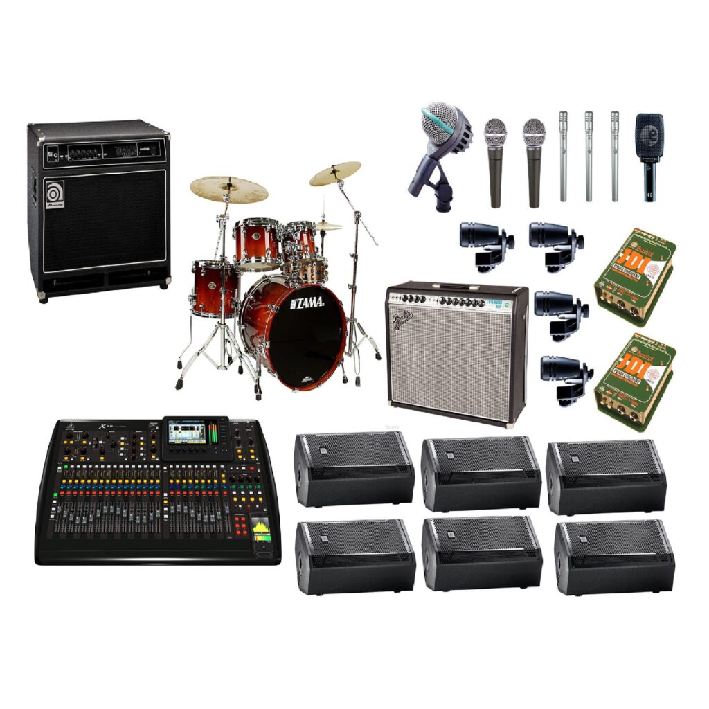 Басовый кабинет AMPEG SVT-410HLF + Ampeg SVT-3PRO 1 Гитарный комбо Fender Twin Amp Pro Tube 100 Wt 1 Ударная установка Sonor Force 3000 1 ZILDJIAN KCD900 K CUSTOM DARK 5 PC CYMBAL SET 1 Drum-Set Shure Beta 1 Стойка для гитар Hercules GS414B Plus 2 Активный сценический монитор RCF NX 12-SMA 3 Система персонального мониторинга Sennheiser 4 Директ-бокс BSS AR-133 6 Коммутация 1 Стойка микрофонная прямая Hercules MS201B Plus 1 Микрофонная стойка «Журавль» 5 Двухъярусная клавишная стойка 1