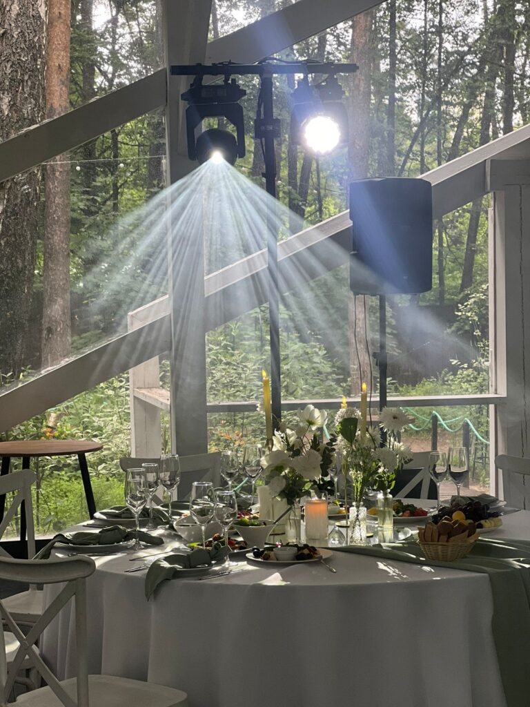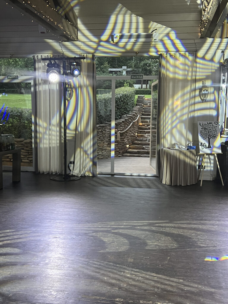 Профессиональное световое оборудование для вашего мероприятия. Вращающиеся головы на компактном тотеме. Лучшее световое оформление для свадьбы, корпоратива, а так же различных официальных мероприятий для создания прекрасной праздничной атмосферы. Тотем - это вертикальная алюминиевая ферма, стоящая на стальном квадратном основании-тотеме, размером 80x80 см, по желанию задрапированная белой или чёрной тканью.