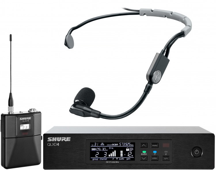 Головная гарнитура — SHURE SM35 + Поясной передатчик SHURE QLXD1 G51 — c приемником QLXD24E