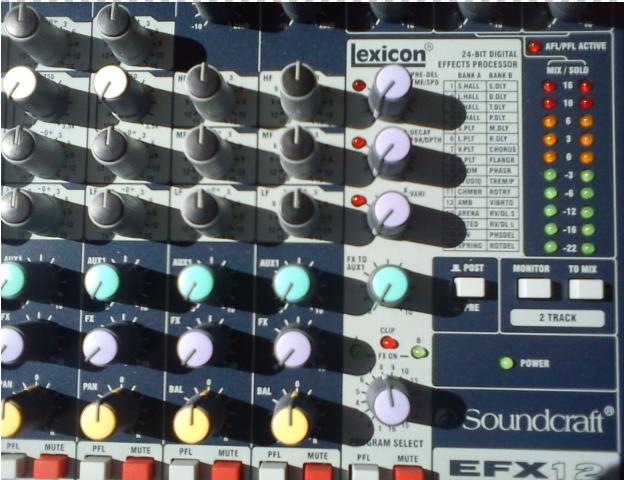 SOUNDCRAFT EFX12 - микшерный пульт со встроенным 24-битным цифровым эффект-процессором Lexicon, расширяя возможности продуктов нижнего ценового диапазона линейки компактных универсальных микшеров Soundcraft.